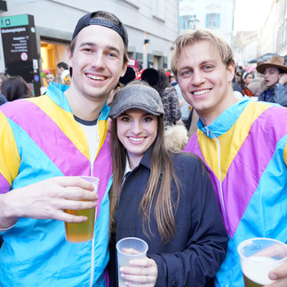 Es war unglaublich! Nach dem Faschings-Umzug der Kleinen Zeitung, ging es dann richtig zur Sache. Das Grazer „Bermuda-Dreieck” hat gebebt. Bereits ab 13.30 Uhr war die „Faschings-Party-Meile”, vom Glockenspielplatz über den Mehlplatz bis zum Färberplatz gut gefüllt, aber ab 17 Uhr brachen alle Dämme.